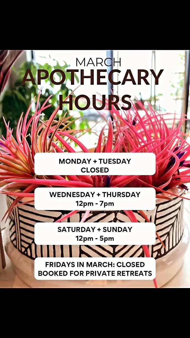 Shop our Herbal and Botanical Apothecary for organic herbs + tonics, crystals, tarot/oracle cards + books. candles + incense, skin care, houseplants and all the accessories for your healing lifestyle. We focus on 1-on1 and small group healing sessions during the week (by appointment only). Shop the Apothecary Friday, Saturday + Sunday 12-6pm. Please be advised: We do NOT accept CASH PAYMENTS for apothecary goods and ALL SALES ARE FINAL.